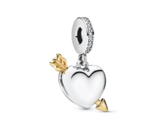 Our charms continue to delight with limited edition pieces that feature hidden surprises, like this heart charms that holds a dangling arrow within.